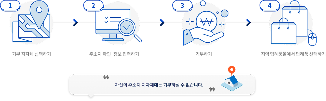 - 답례품 신청: 원하는 답례품을 신청합니다.